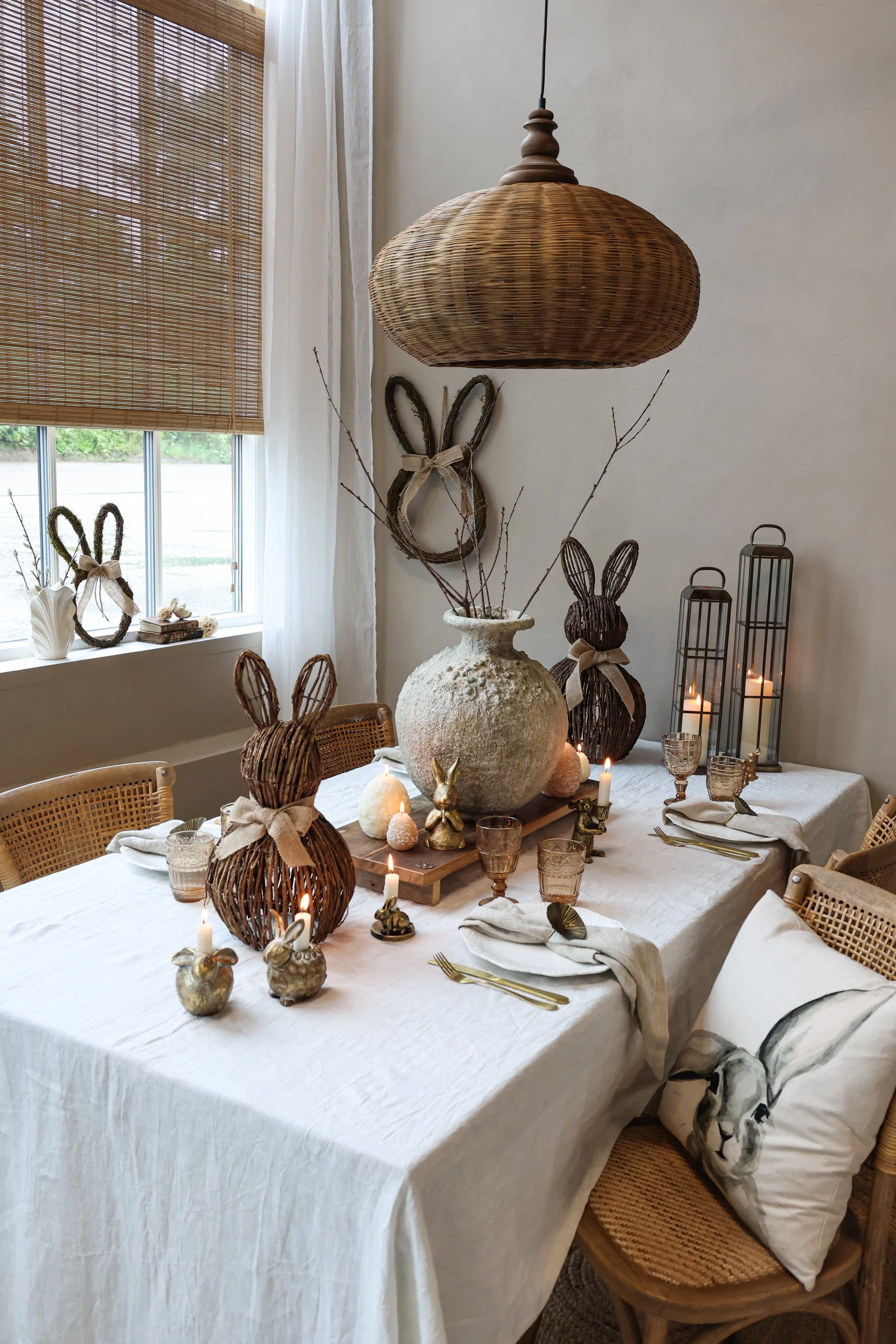 A beautiful addition to your Easter styling. This gorgeous wooden braided raibbit with dried grass and hessian bow will add a whimsical touch to your Easter celebrations. This is perfect alternative to an easter wreath on your front door.